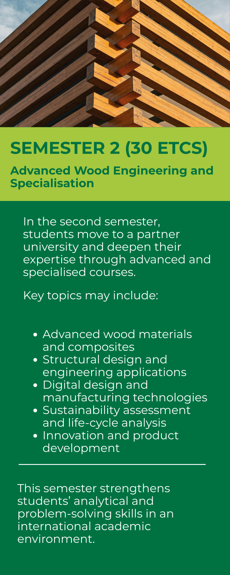 A comprehensive Master's programme in Sustainable Wood Engineering